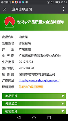 宏鸿以贯穿基地种植、运输、入库、储藏、出库、配送全程的六级监控体系,对食品进行360度安全管理,保证食品安全。